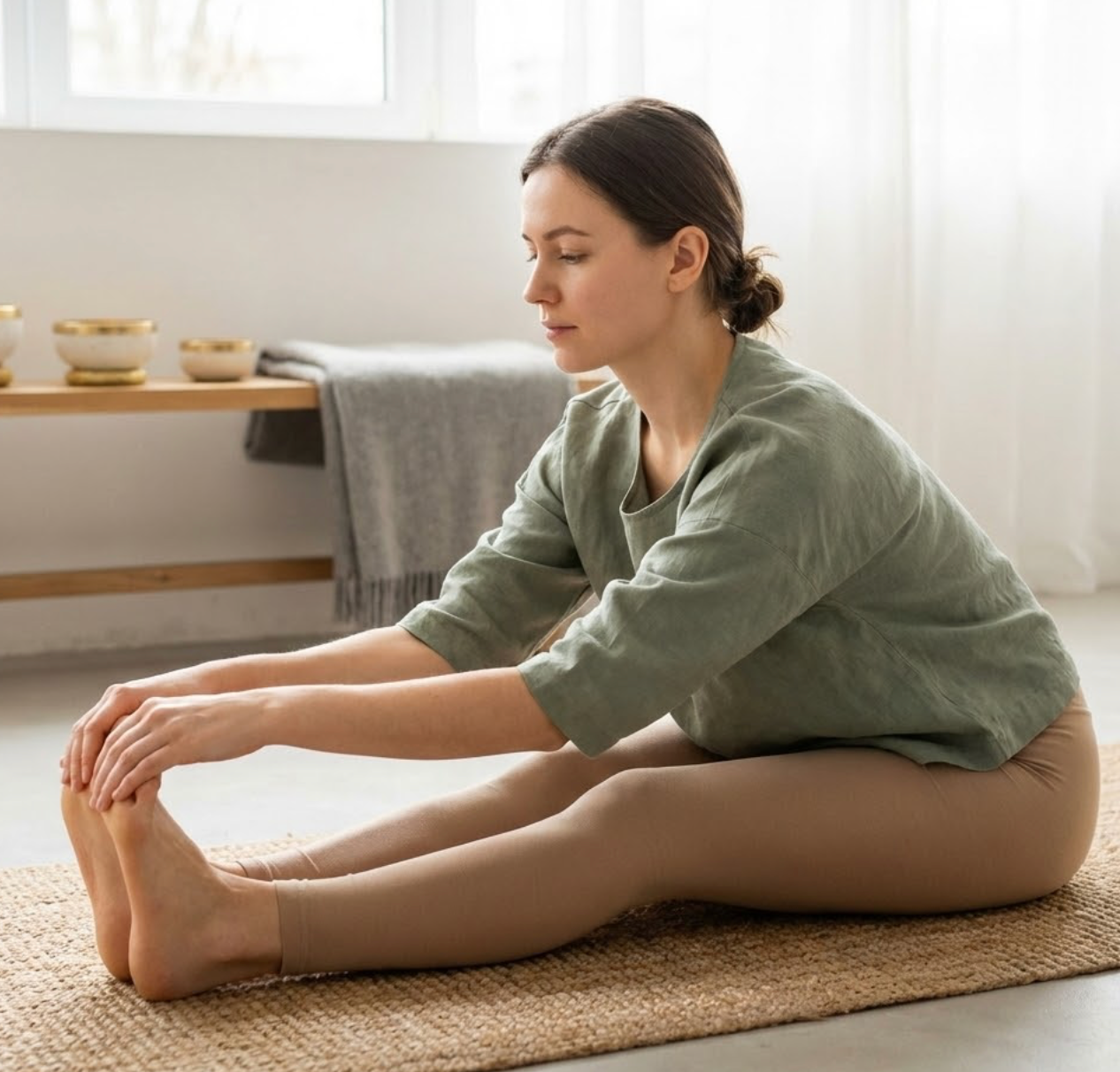 Promoting rest, recovery, and sustainable energy through nervous system regulation yoga. This framework gently integrates breath, movement, rest, nutrition, and connection to support steady nervous system regulation and make recovery both sustainable and long-lasting.